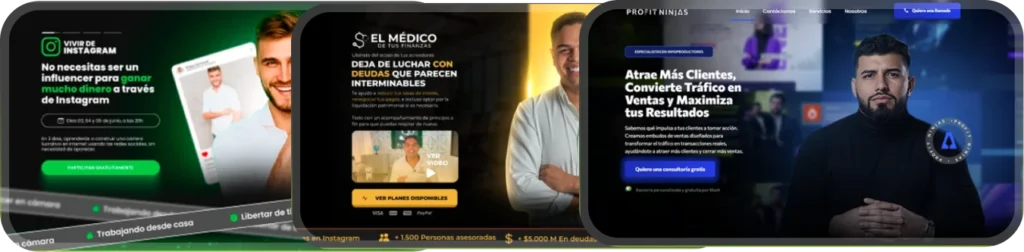 Trabajo de la mano con infoproductores para construir landing pages que transmiten su esencia, conectan con su audiencia y convierten visitantes en clientes listos para comprar.