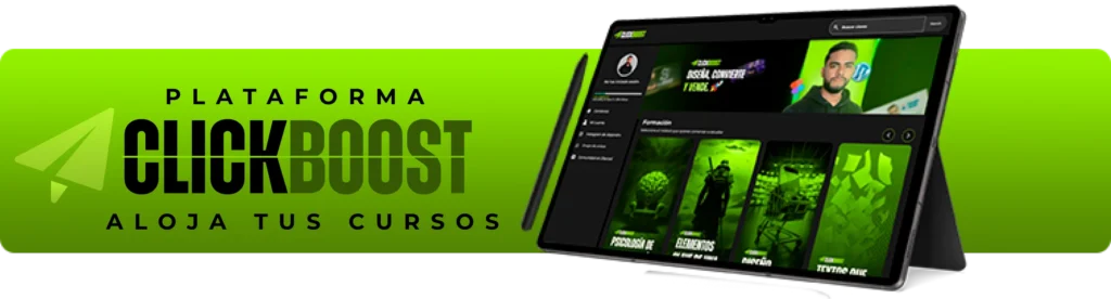 Con ClickBoost tienes tu propia plataforma educativa, sin depender de terceros ni pagar comisiones abusivas. Todo el control es tuyo, desde el diseño hasta la monetización.